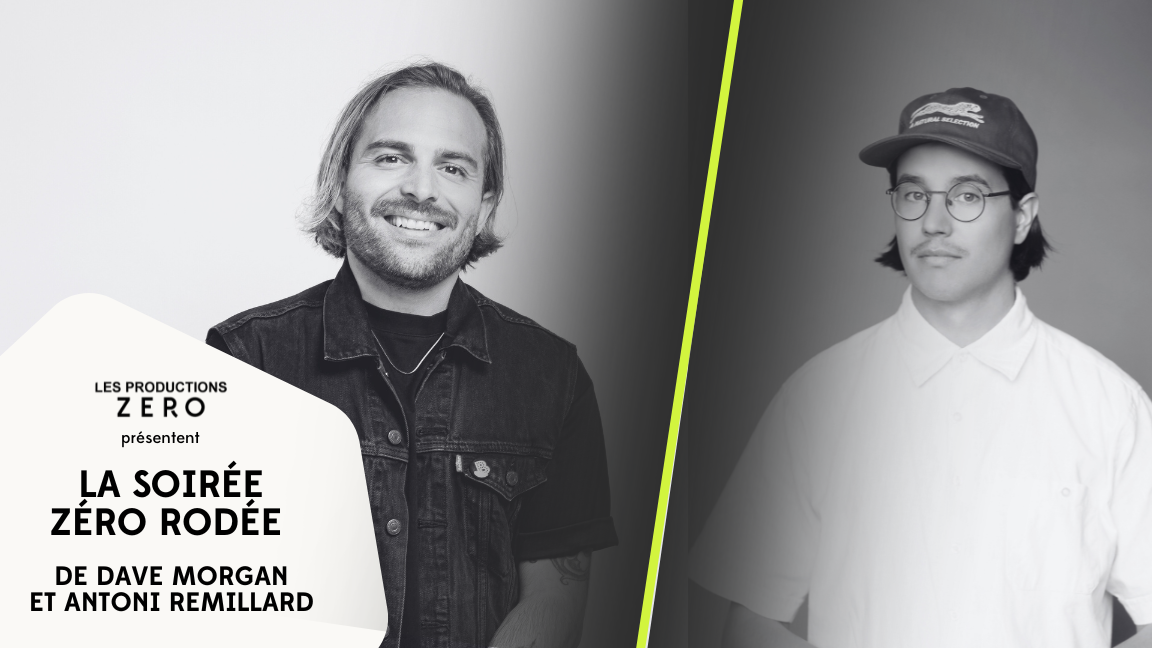 Les soirées Zéro Rodées avec Antoni Remillard et Dave Morgan Dave Morgan et Antoni Remillard montent sur scène pour casser du matériel tout neuf. Des numéros en rodage, des idées en chantier, de l’essai-erreur en temps réel. Une soirée laboratoire où on teste, on ajuste et on recommence. Venez rire avec …